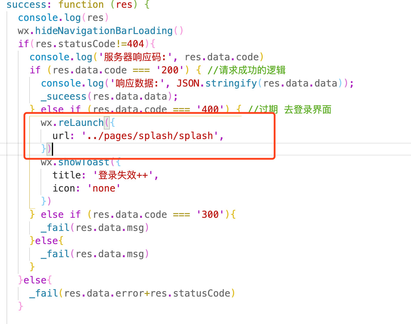 同一封装了网络请求,在过期之后跳转到登录界面 但是 wx.relaunch无效