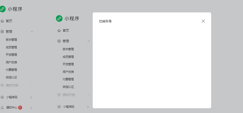 小程序被封禁后,我想要切换到同一微信下其他账号如何切换,点击切换页面不显示