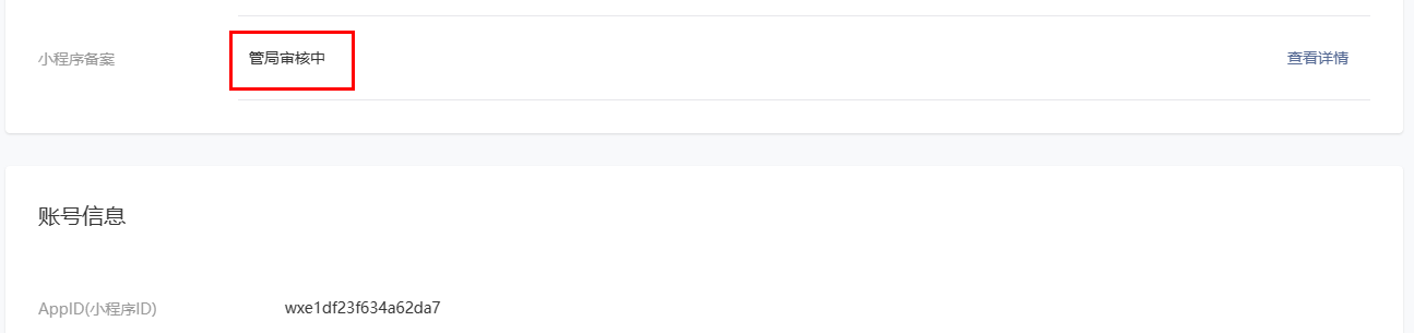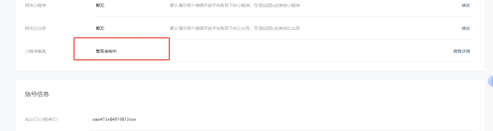 经查管局、小程序前端更多资料都已显备案号,但小程序后台的备案状态还一直显示”管局审核中“,是啥原因?