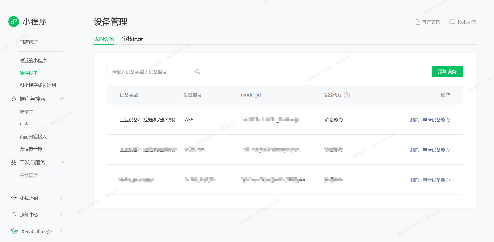 1、当前场景已有模板【设备异常通知】正在审核评估中,请勿重复申请,耐心等待;2、空压机和鼓风机为不同的两个设备,需分别添加,如:工业/农业生产——空压机、工业/农业生产——鼓风机
