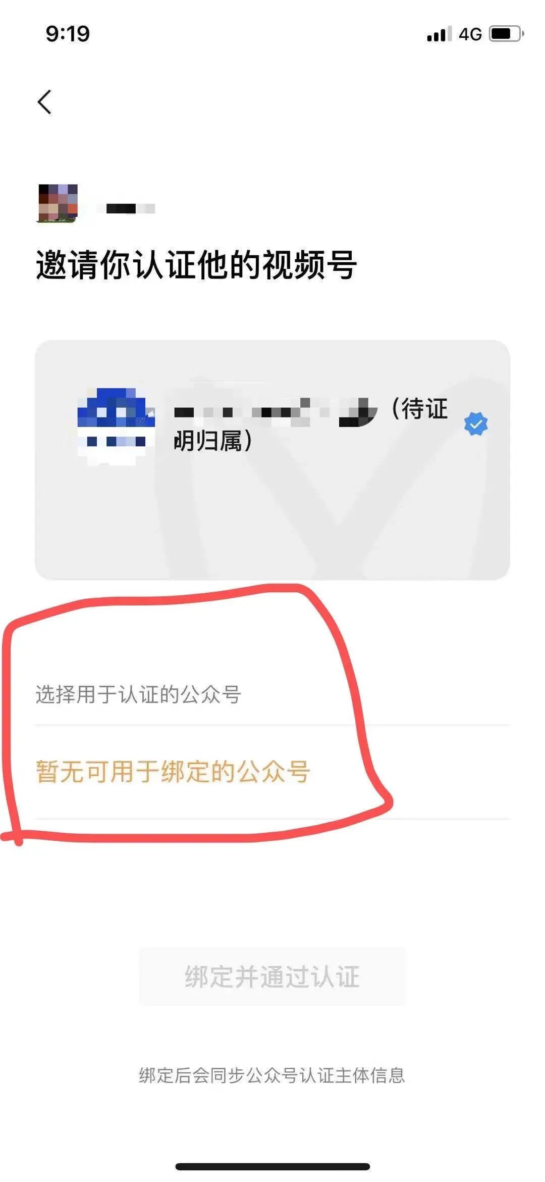 视频号开通时要求证明名称归属,企业公众号管理员扫码显示暂无可用于绑定的公众号,如何解决?