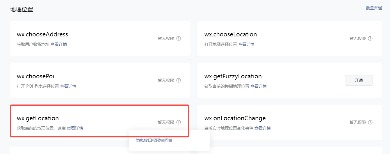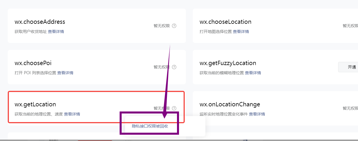 你这个是违规了,收回这个隐私权限了,需要你找到这个违规处罚站内信,按照提示整改后,申诉通过后,才会自动解封的。