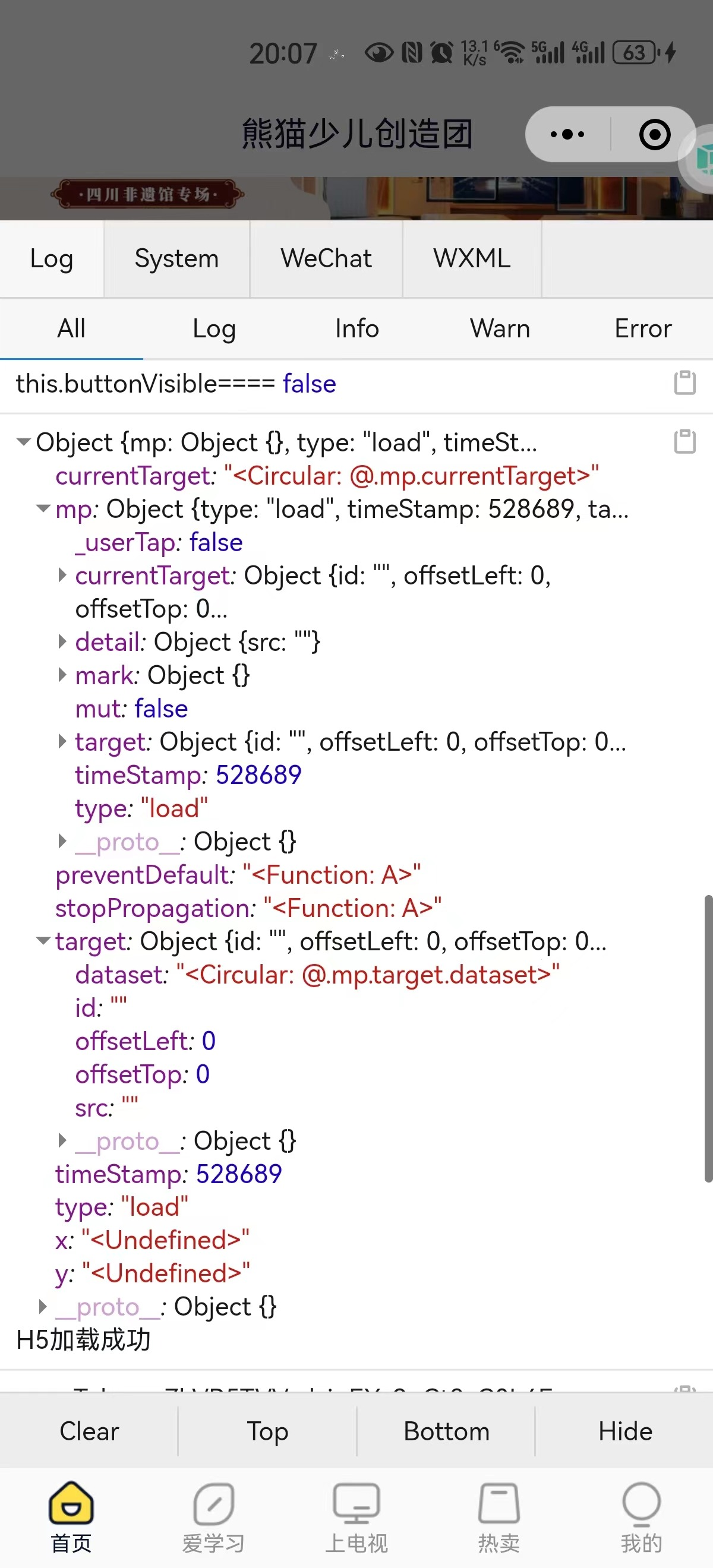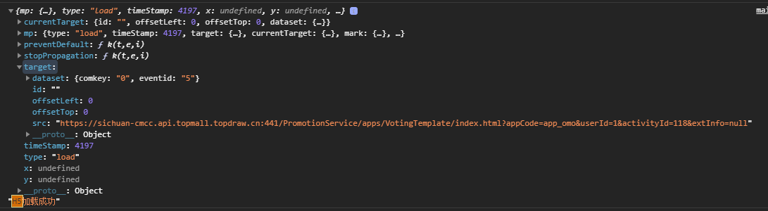 bindload绑定的loadSuccess方法内无法获取到h5页面地址,开发者工具上可通过e.target.src获取到h5地址,但是并无e.detail;真机上e.detail.src和e.target.src均为空,返回结果详情见图三