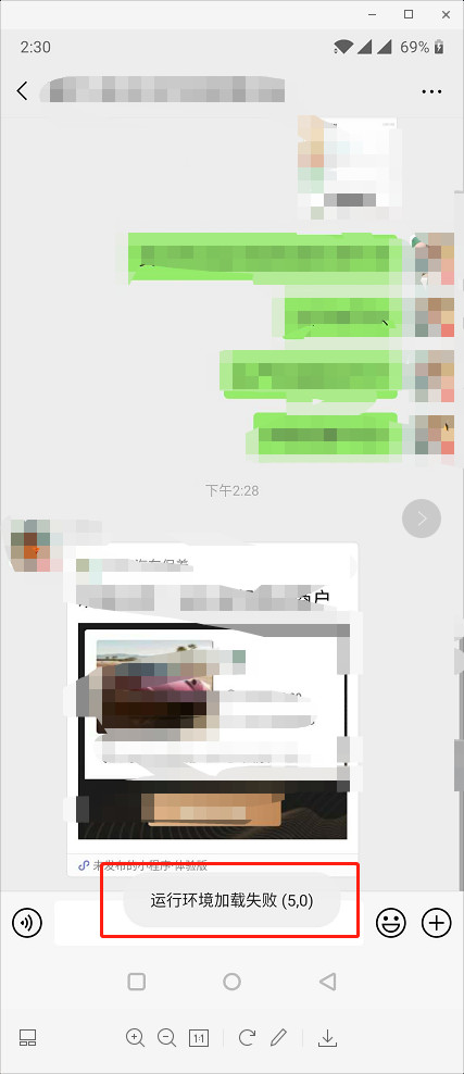 打开体验版的微信小程序,报运行环境加载失败(5,0),