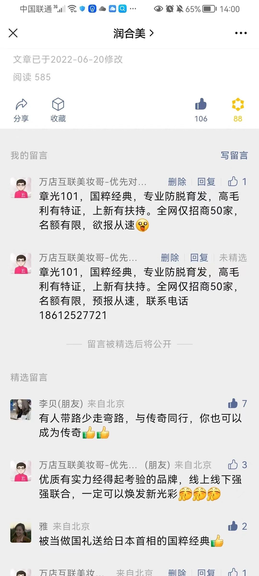 自己留言显示未精选,但后天却根本没有收到那条留言,根本无从精选留言