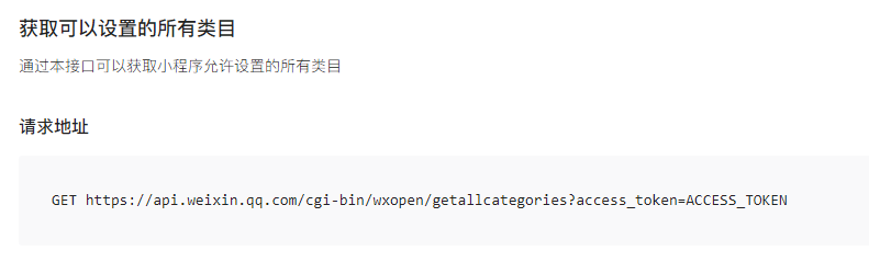 自己直接注册的小程序,授权到第三方平台后,获取可设置的所有类目