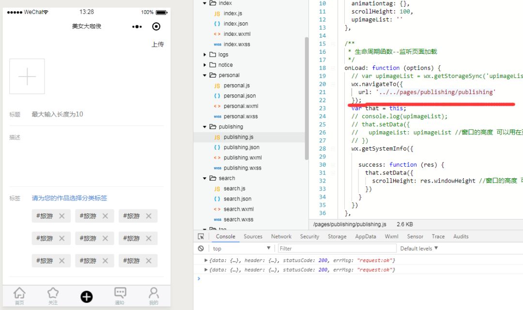 你的publishing页面不是已经设置在tabbar中了?只能用wx.switchTab
