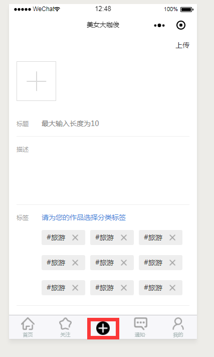 这个是跳转回去tabbar设置的页面吧!!我要点击+按钮打开的页面以navigateTo方式打开