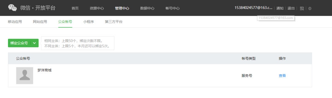 确定绑定在同一个微信开放平台里的!但是主体,不确定是什么概念?![]()