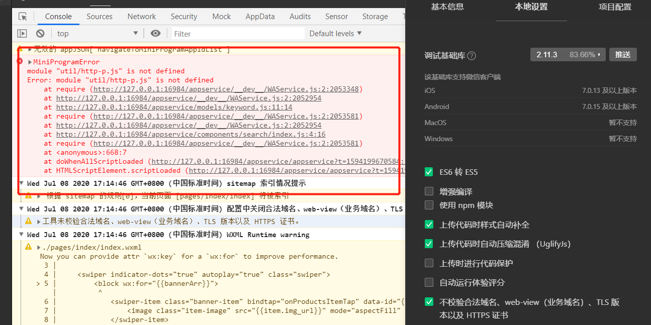 楼上说的对,开启分包后,主包中引用了子包的某个模块,会导致这个问题。首先确保引入的路径没问题,把子包的模块移动外面来,再重新引入,就不会报错了。