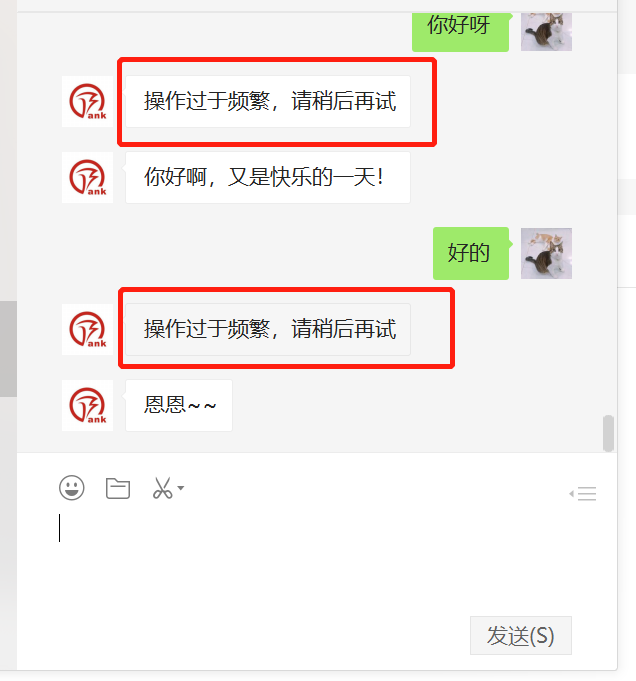公众号接入第三方开发,输入消息多了,会提示操作过于频繁,请稍后再试。请问是哪块限制的吗?