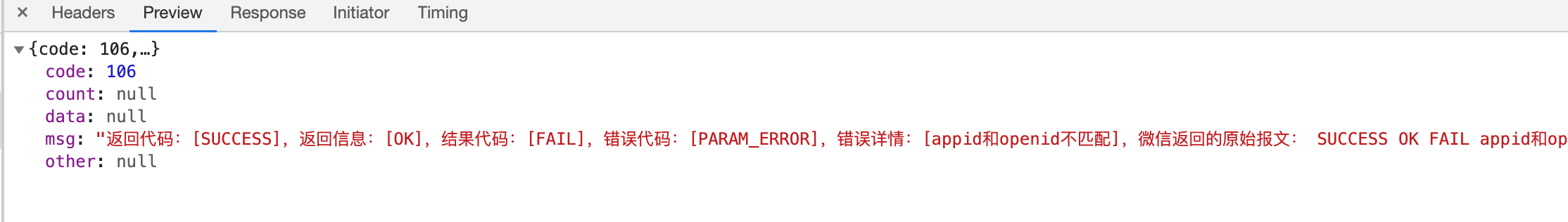 详解:有正确的两个对应参数,但是应用层代码写死了appid或者openid参数,导致请求出去的数据是错误的