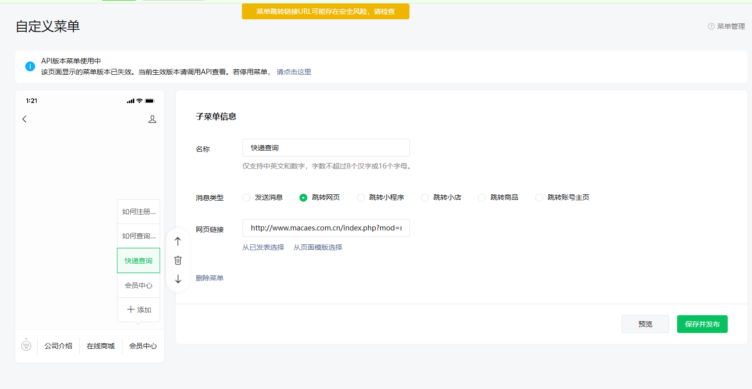 链接:https://mp.weixin.qq.com/advanced/selfmenu?action=index&t=advanced/menu-setting&token=348953074&lang=zh_CN