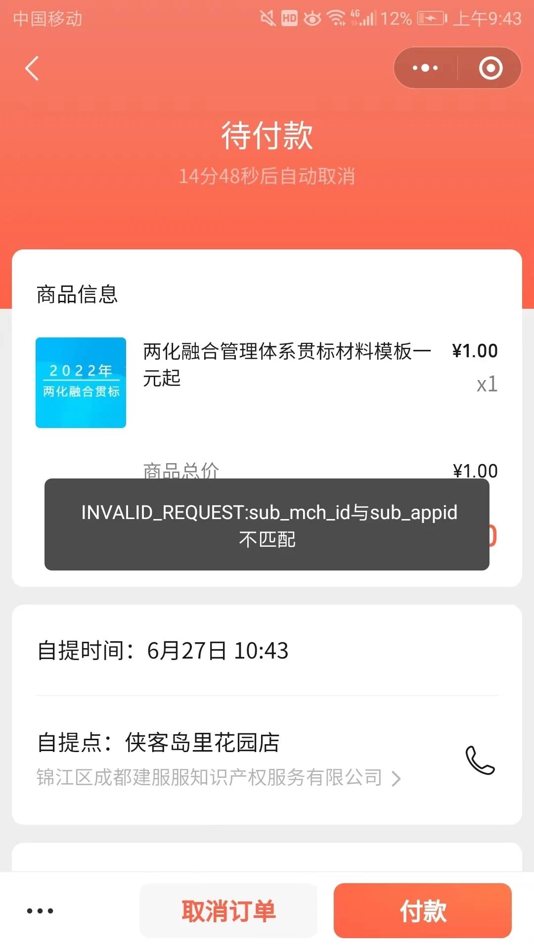 AppID: wx05234a60db865591,小商店商户号: 1605307445 ,微信支付商户号:1622323496 。问题 支付异常
