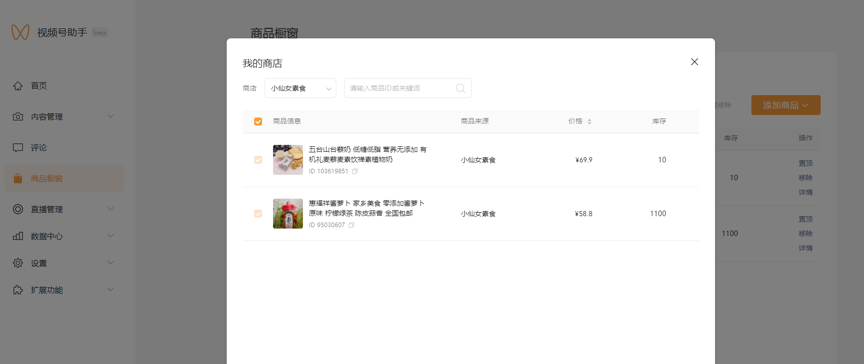 为什么视频号的小店里有商品 直播端里商店里没有商品