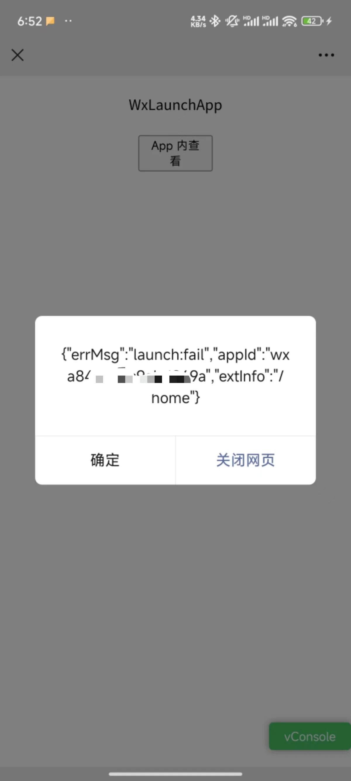 接入 wx-open-launch-app 的时候,检查配置和 appid 都正确,最后一步,出现跳转弹窗后,点击允许按钮后报错“launch:failed”,手机中有安装对应的app,安卓和ios都拉不起来