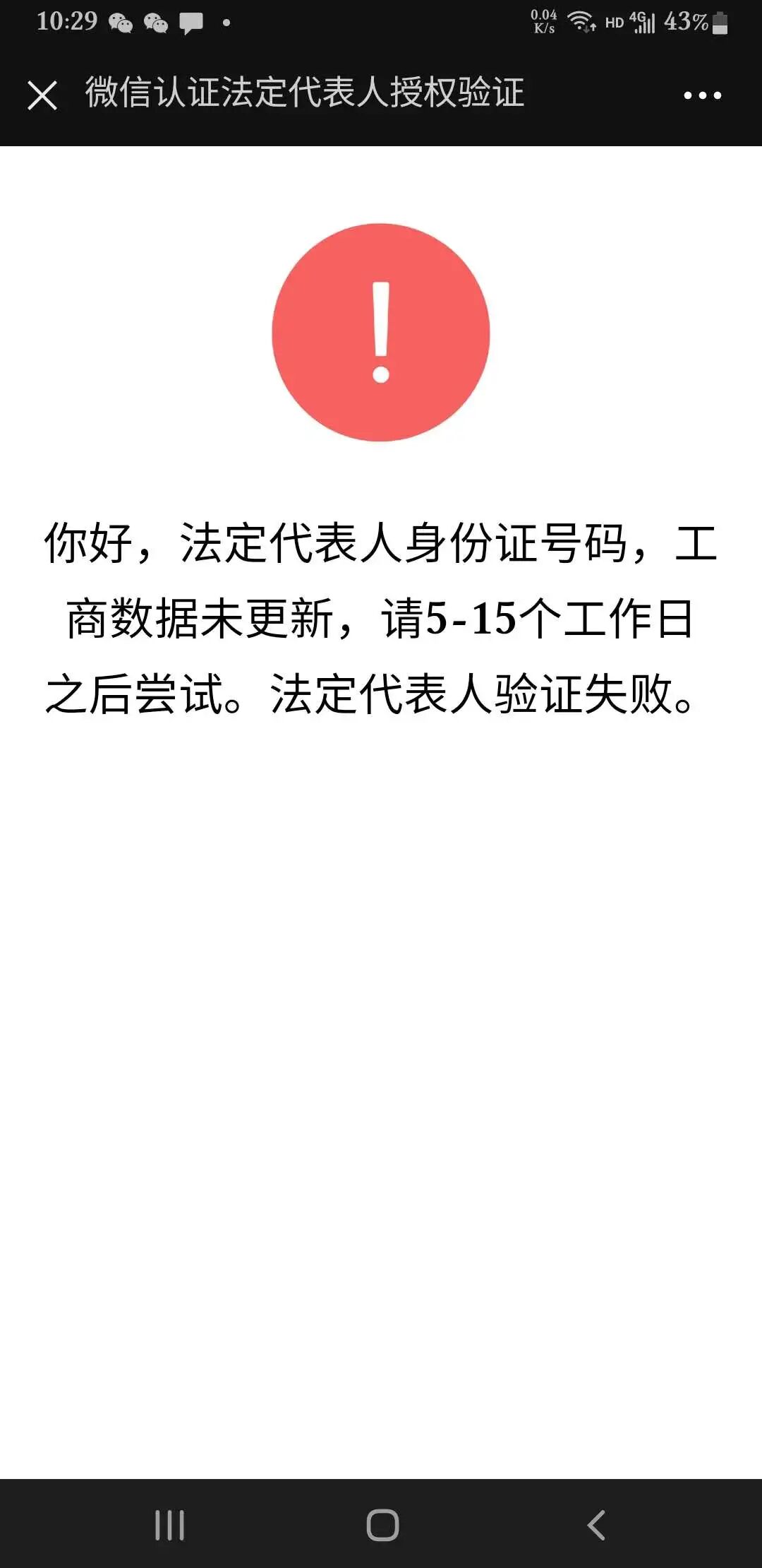 你好,核查发现填写的主体名称与营业执照上的主体名称不一致,故法人验证失败。请严格按照营业执照的主体名称填写。
