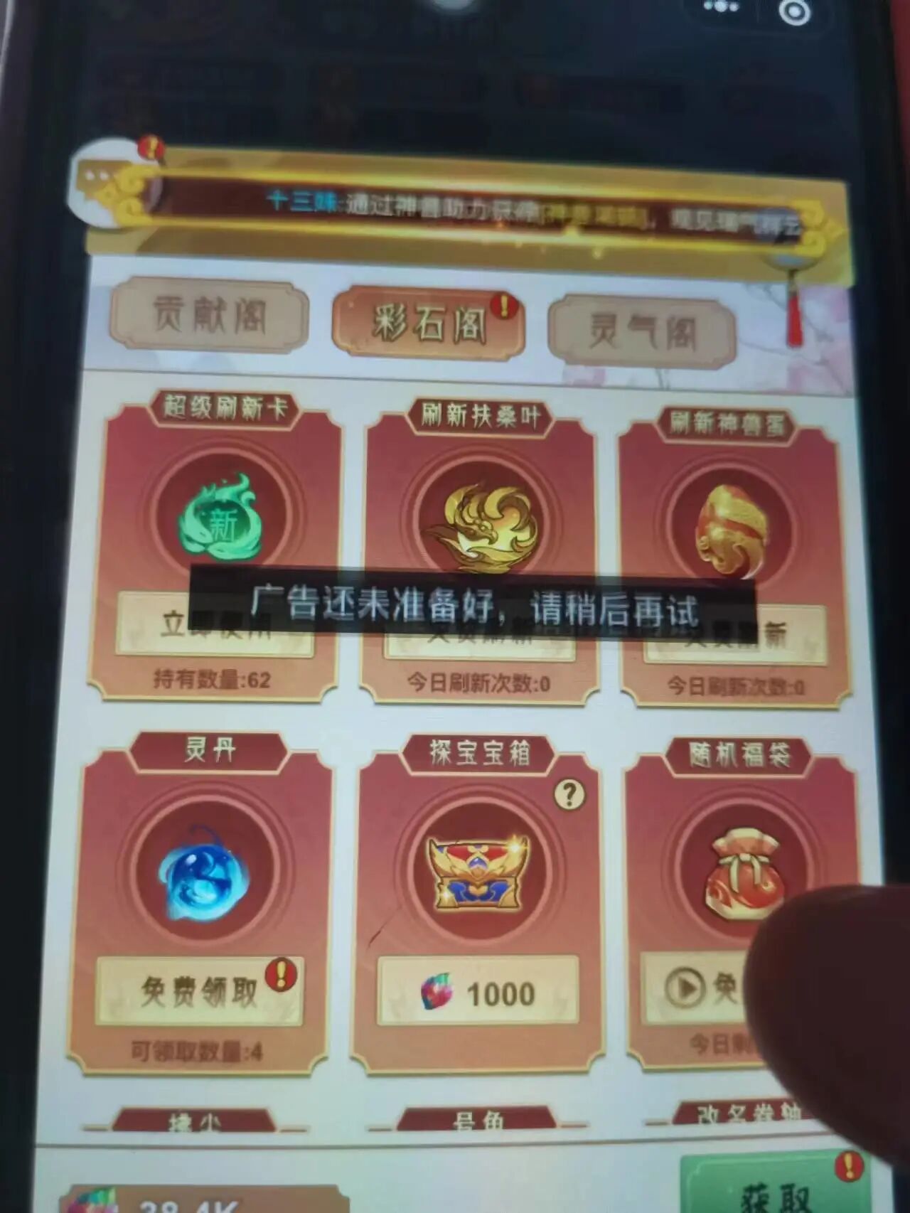 玩小程序山海经游戏没有广告,怎么解决?偶尔有一条广告,大部分时间都没有,别人怎么都有