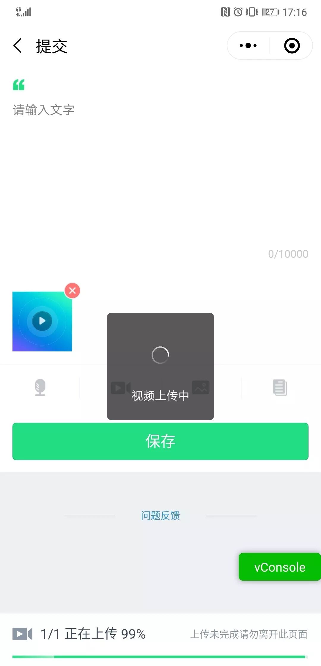 我这也有这个问题,一上传马上100%,但其实是刚开始上传,看着100%的进度条等好长时间。华为p20 微信6.7.3