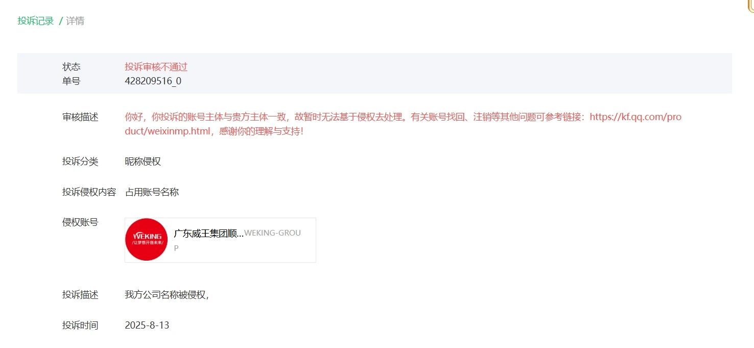 已经提交名称侵权投诉过了7个工作日了,还是没收到任何的反馈,到底提起的申诉是否成功都不知道,根据指引点击公众号底部的侵权投诉想查看进程,点开发现一直都是系统繁忙。请问有什么办法可以解决这个问题吗?