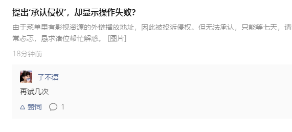 由于菜单里有影视资源的外链播放地址,因此被投诉侵权。但无法承认,只能等七天,请问这种情况会否被封号?实在是非常忐忑,恳求诸位帮忙解惑。