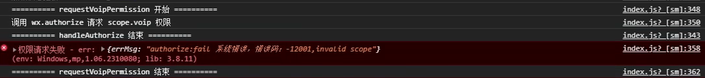 我本意是要调用wx.requestDeviceVoIP,但是接口一直返回没有消息通知权限,我本身微信是开通了的。然后就去请求了 这个scope.voip权限,scope列表中文档没有公开该权限。