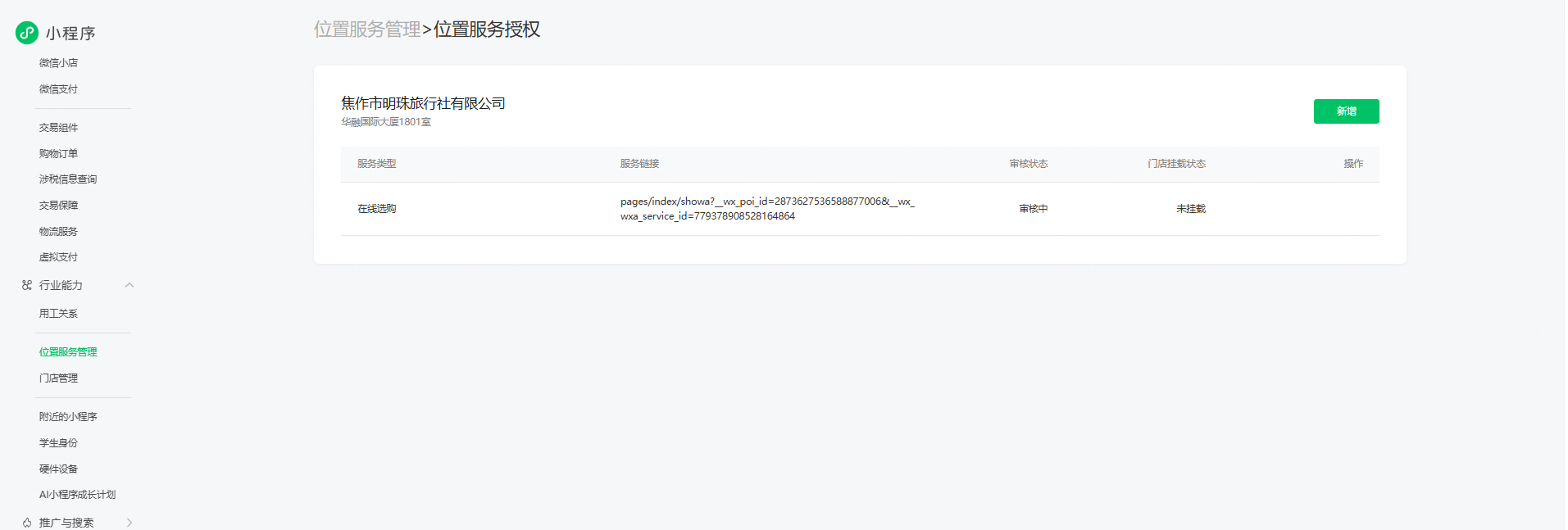 微信小程序后台行业能力菜单里怎么申请开通腾讯地图位置服务的菜单,我们商户门店地图POI位置挂载服务申请已经通过审核,但小程序后台行业能力还没有腾讯地图位置服务菜单