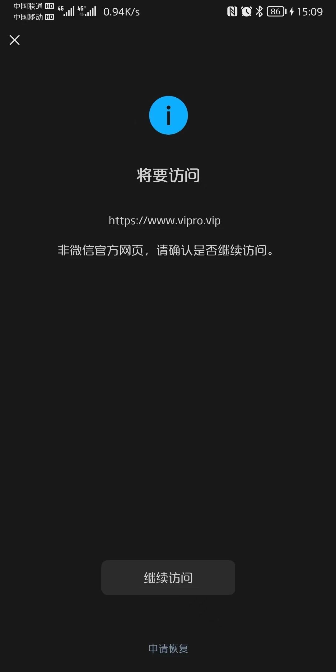 https://www.vipro.vip/ 网站建好以后发现被微信拦截,请问下怎么解封?网站不存在任何违法违规信息,谢谢!