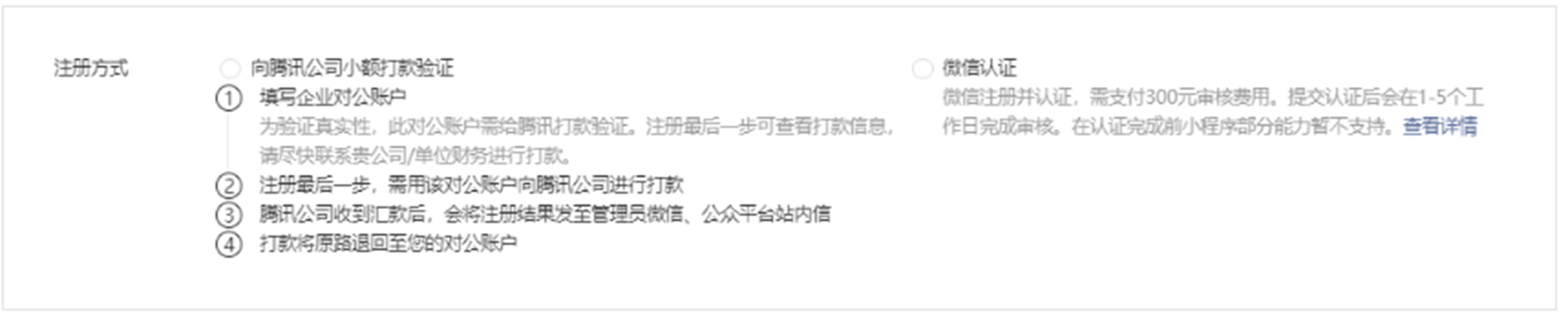 在注册小程序的时候,可以选择打款或微信认证的方式,想问选择微信认证是否也需要先进行企业对公账户打款呢?