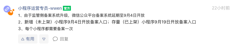 我是9月1号之前注册的小程序,备案入口找不到在哪里