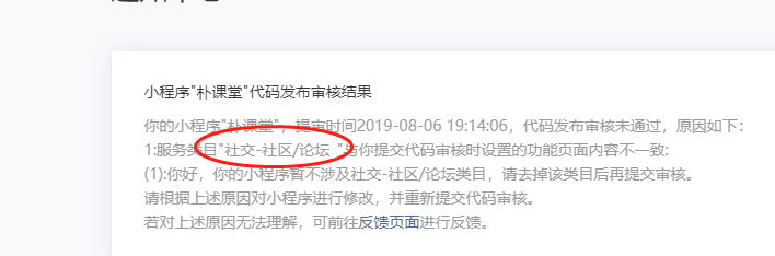 你好,若小程序仅提供留言评论功能,暂不属社交-社区/论坛类目范畴,建议删除该类目