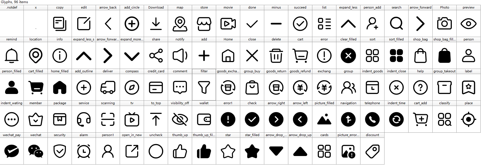 但具体是什么字体文件,图标的编码是多少,没有找到文档。