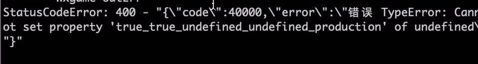 StatusCodeError: 400 - "{\"code\":40000,\"error\":\"错误 TypeError: Cannot set property 'true_true_undefined_undefined_production' of undefined\"}"