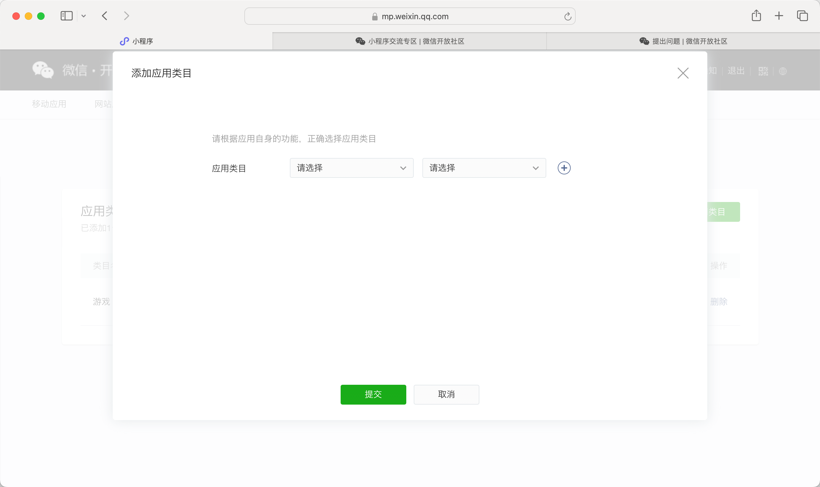 你好,因该账号未认证主体,故无法申请此类目,建议先在开放平台--账号中心完成开发者资质认证。注:认证后,需用户先在开放平台--管理中心--应用类目,点击添加应用类目,才能选择相应类目重新提交申请。