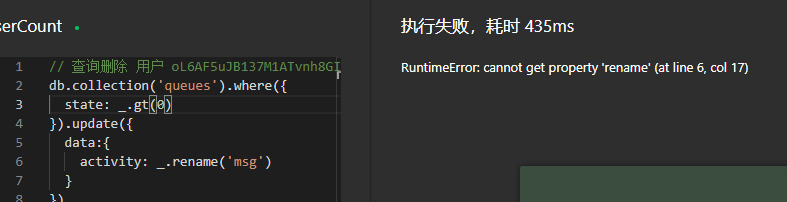 RuntimeError: cannot get property 'rename' (at line 4, col 16)