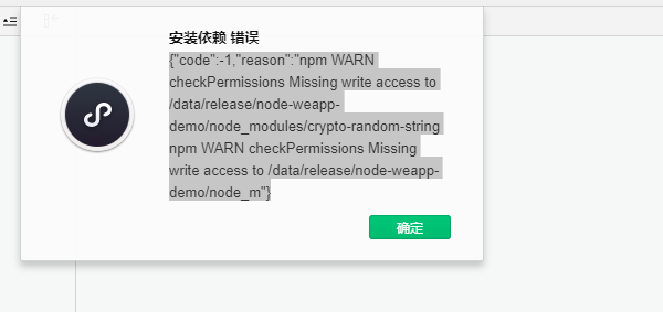 我用微信小程序开发者工具 腾讯云功能上传测试代码并安装依赖。显示错误? 为什么。 没有写的权限?