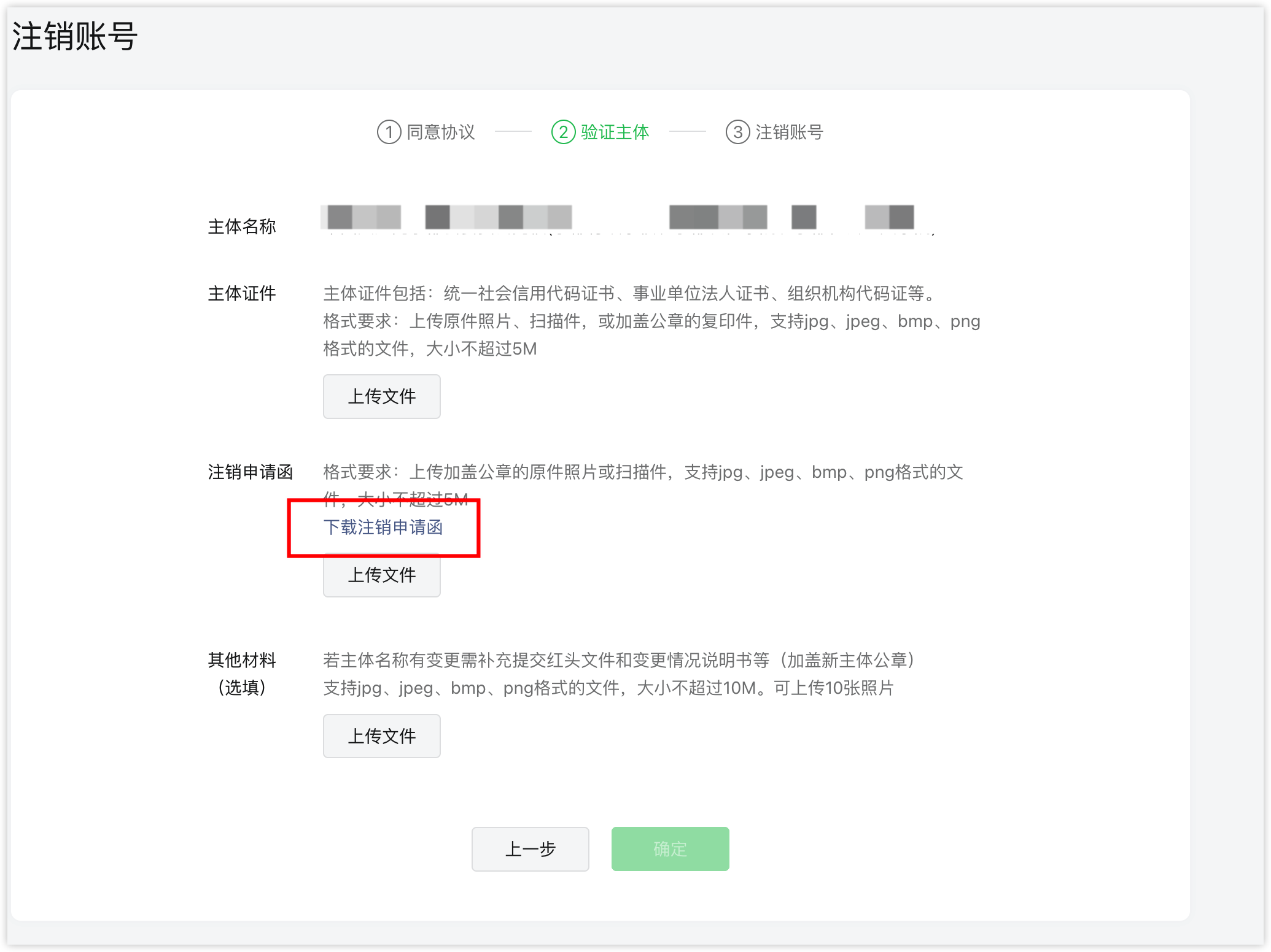 提交的资料是在后台注销页面下载的《公众平台账号注销申请函》