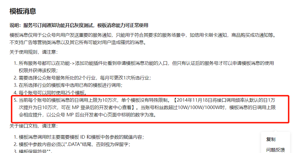我们都30多万粉丝了,模板消息调用次数还是10万次