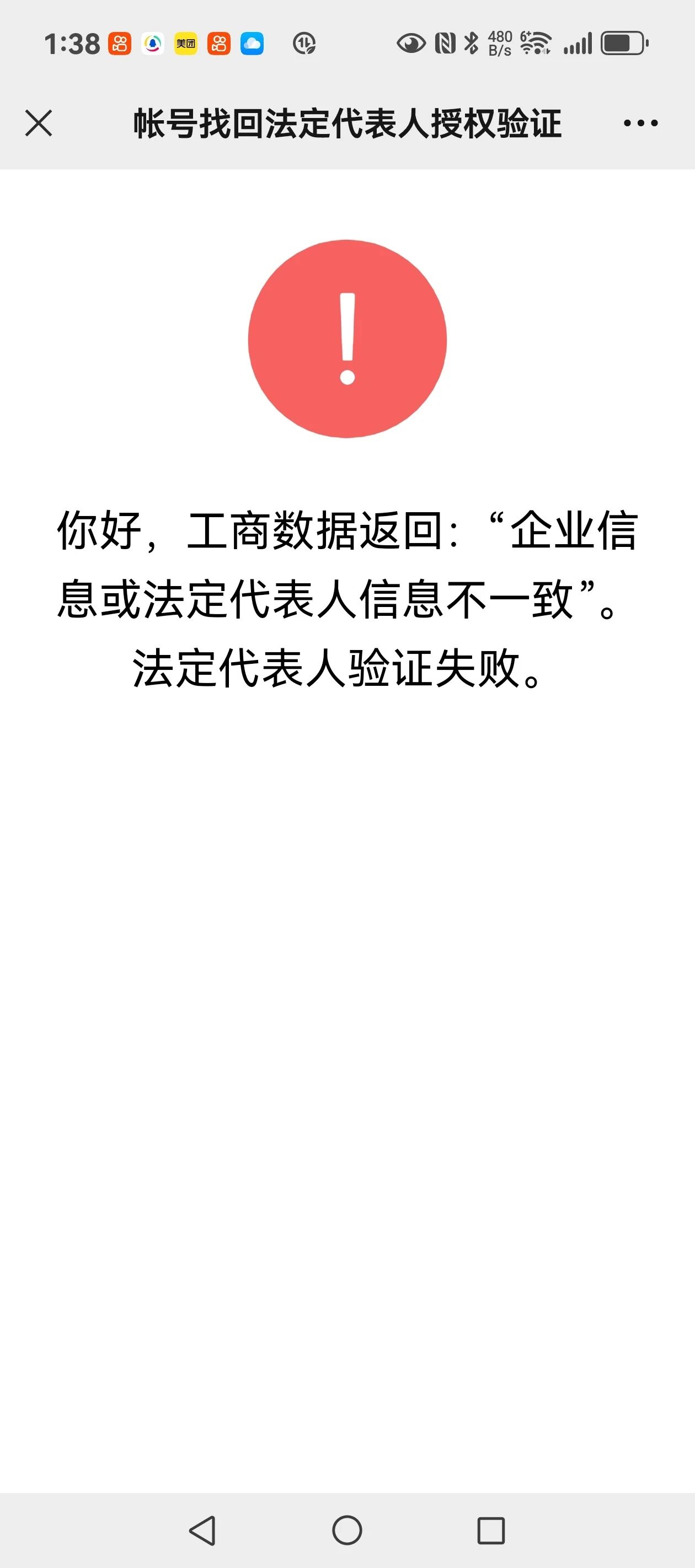 应该是18年之前注册的企业微信公众号,管理人员早已离职,无法追溯,打算通过法人去认证重置管理员账号,但是提示企业信息与法人信息不一致。(因为18年之后该注册的企业变更过企业名称)请问如何操作?