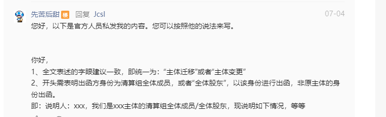 您好,我在申请变更主体的时候贵平台需要提供说明函公证,现在说明函我写好了,为了提供准确的说明函,我想在公证之前请您帮看看说明函是否写得符合贵平台的要求(平台没有模版),担心公证完了提交上去贵平台又说不符合要求,到时又反复公正浪费费用,还降低工作效率,盼回复,谢谢。