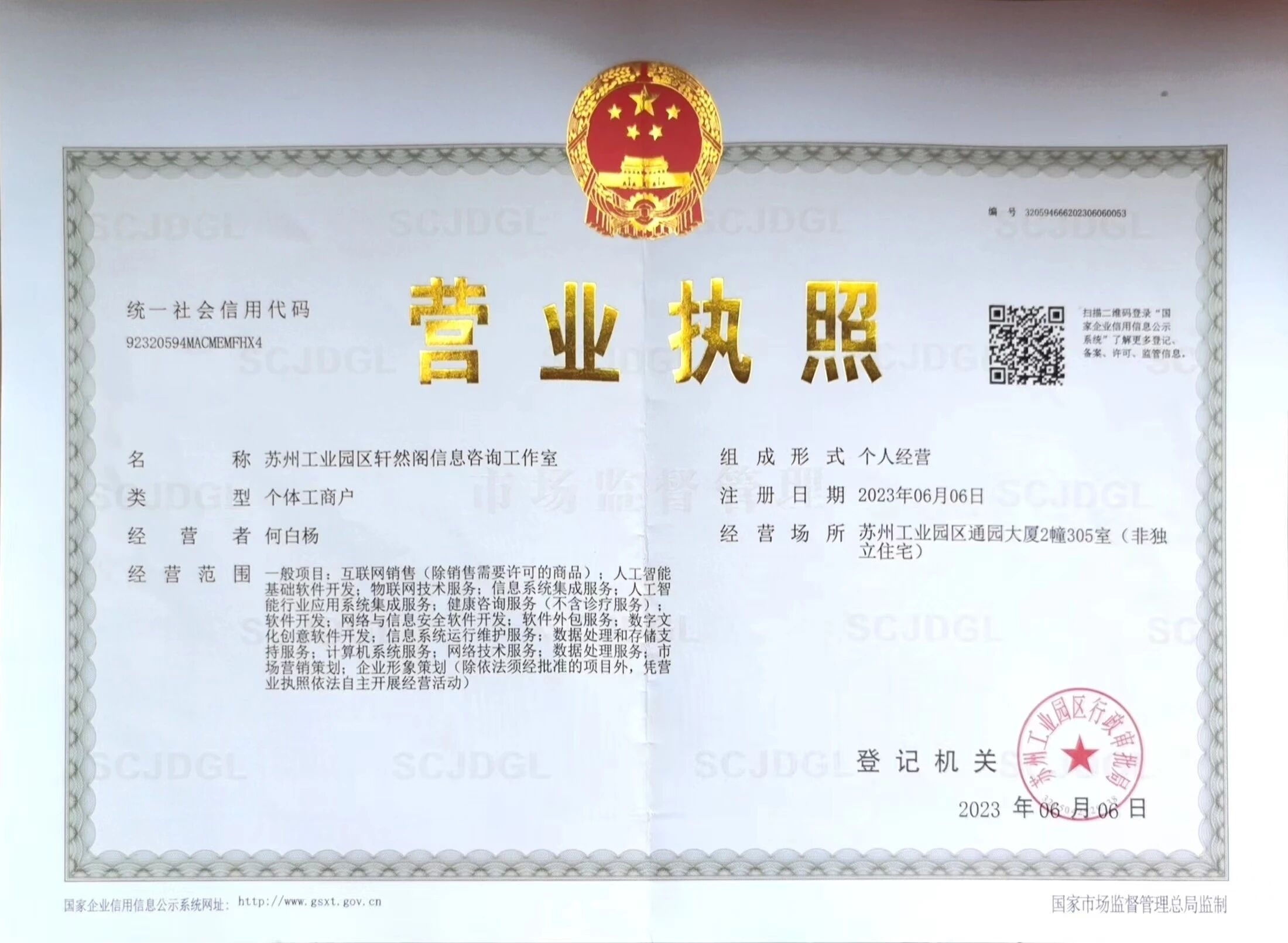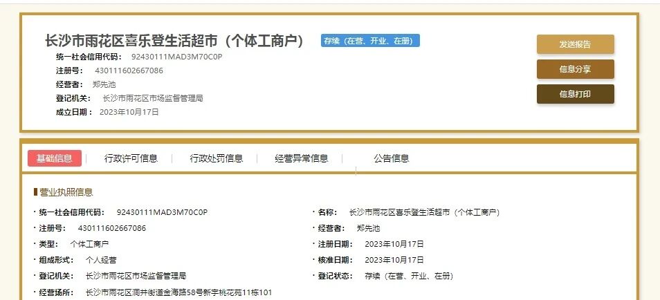 统一社会信用代码:92430111MAD3M70C0P 注册号: 430111602667086 经营者:郑先池 登记机关: 长沙市雨花区市场监督管理局 成立日期 : 2023年10月17日