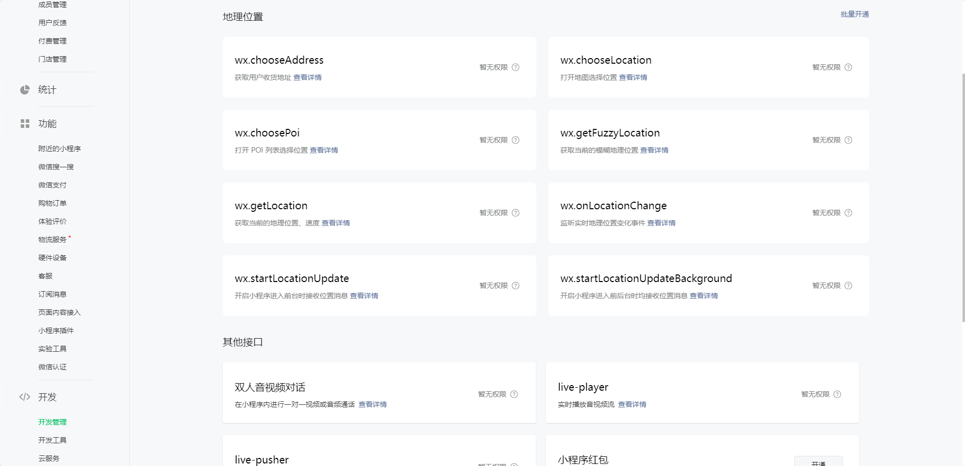 我们刚申请的小程序,完成了备案等都还没发布上线,刚开通的接口(地理位置接口),接口权限就又被收回去,连申诉的入口都不给。多方打听知道要求维护更新隐私协议(更新声明确认生成协议,并通过审核),操作完了后,还是没有给我开通出来,还是属于被收回状态,请问怎么办。新弄好的小程序刚准备使用就遇到这种事,人工客服总是让我发帖,发帖,发了又没人处理,找了很多帖子,发现很多人都是遇到了这个情况!请微信官方认真对待该问题,不要徒增用户的情绪!