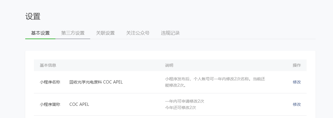 已发布的小程序关键词搜索不到,搜索光学光电废料可以搜索,但是搜索COC或者APEL却搜索不到,麻烦告知下需不需要修改小程序名称,谢谢了哈!