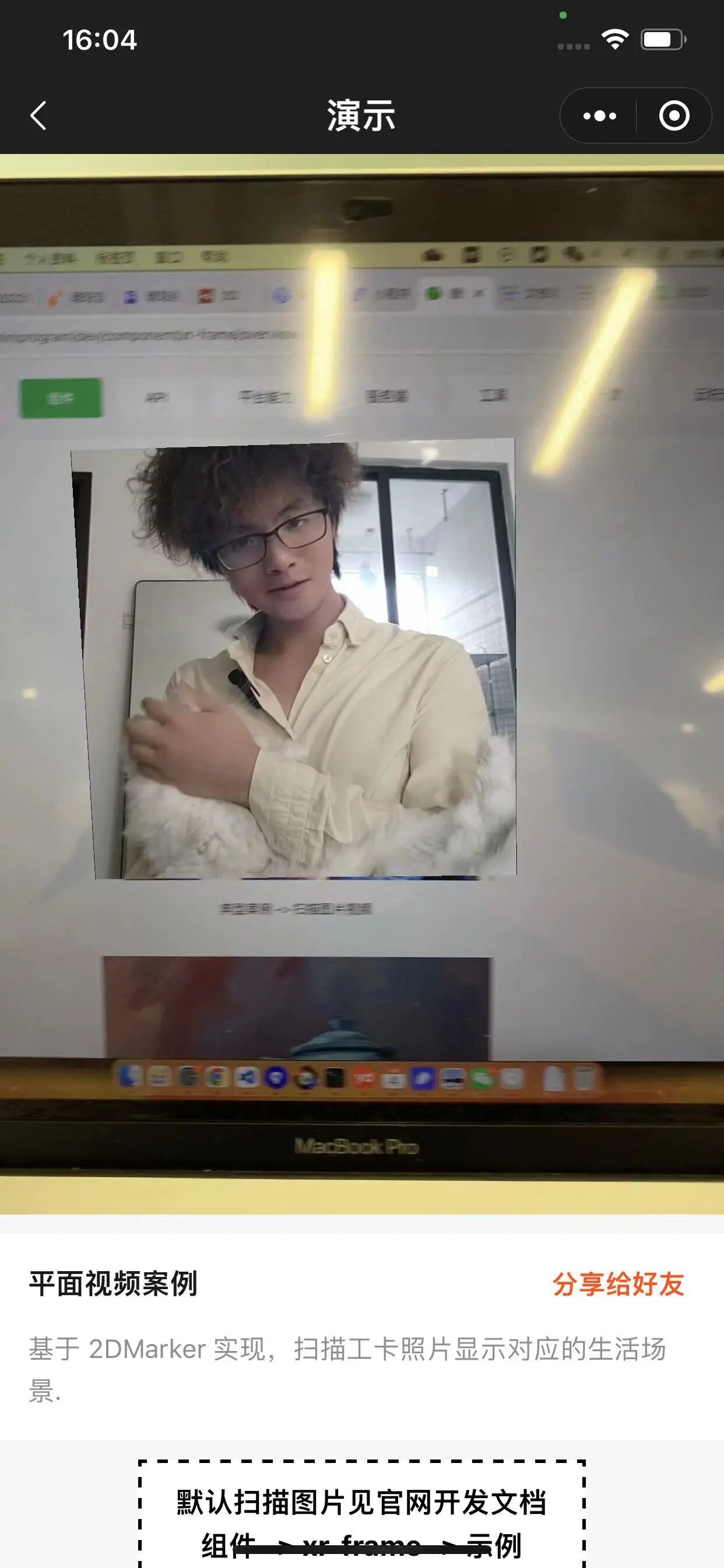 2、识别几次后必定闪退导致了微信崩溃,测试步骤过程,使用的官方示例 -> AR典型案例 -> video扫描图片视频(见图),识别成功后挡住图片2秒后移开手再次识别,重复几次后必定崩溃,小程序多次崩溃后触发微信的安全模式。