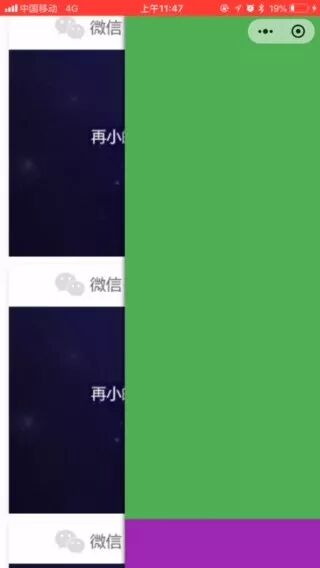 不应出现紫色块(紫色是app.json中window.backgroundColorBottom设置的颜色)