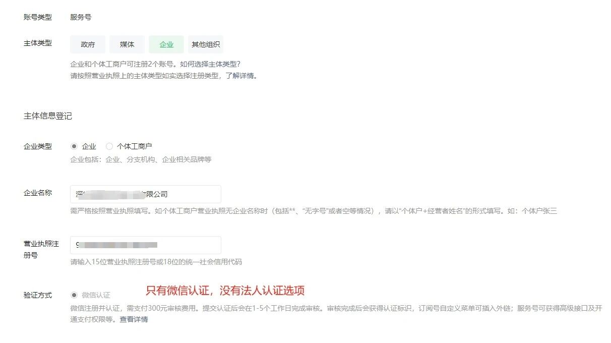 你与你的代理选择的验证主体方式不一样吧,你肯定是选择的微信认证验证主体,这样需要你支付300元微信认证通过后才能使用这个账号,你的代理肯定是选择的支付验证,通过主体对公账号小额打款验证了主体