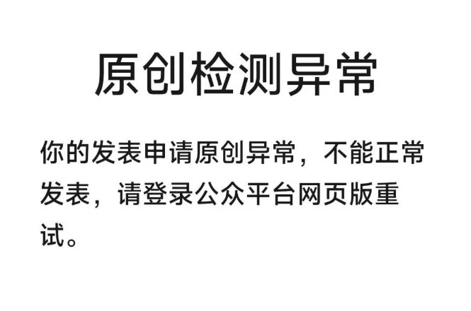 目前市南区医疗健康管理中心公众号文章发布时显示原创检测异常,公众号助手无法发放,该如何处理