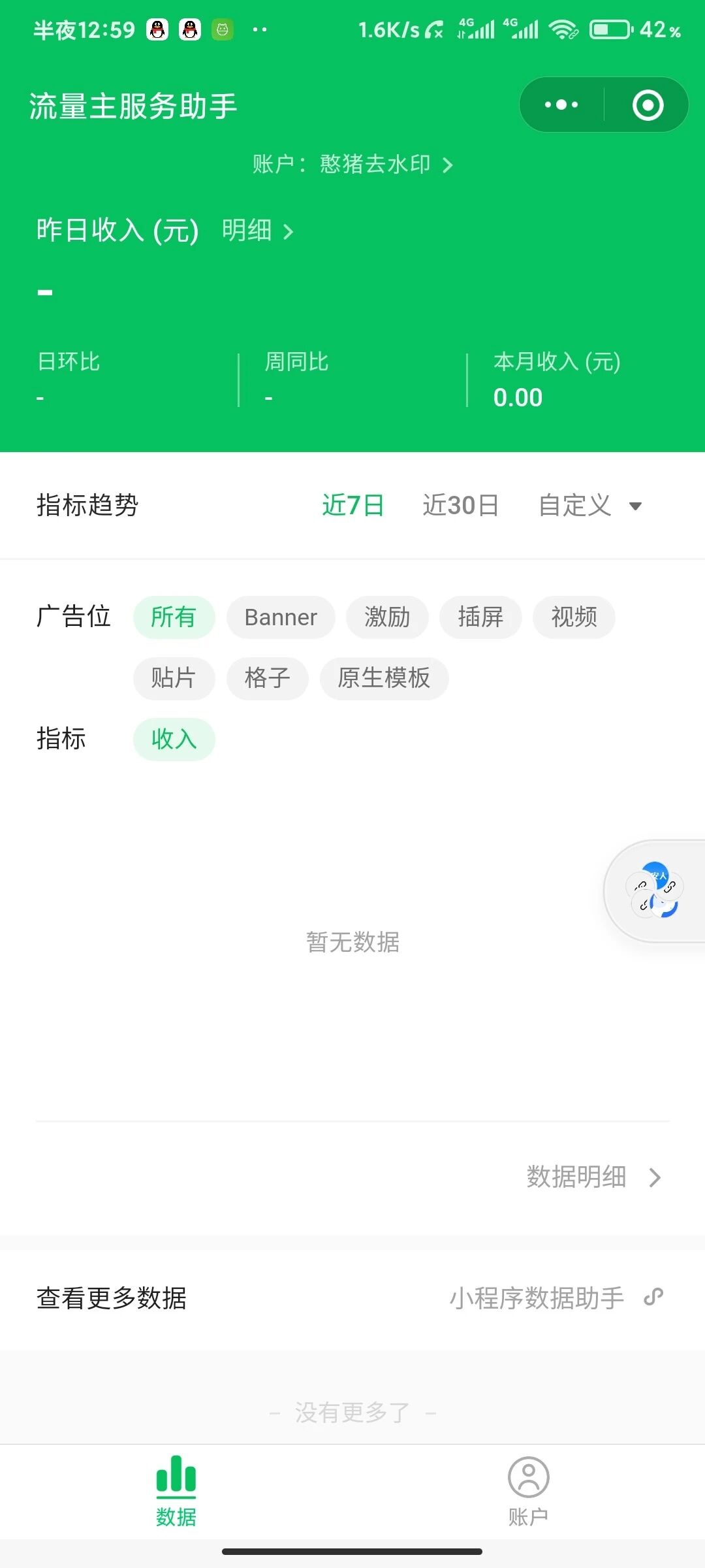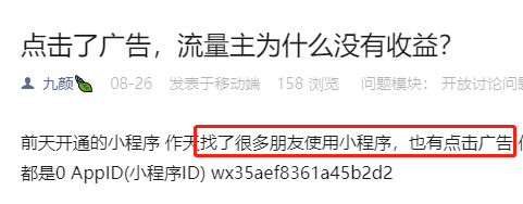 前天开通的小程序 作天找了很多朋友使用小程序,也有点击广告 但是今天查看的时候收益竟然是0,全部都是0 AppID(小程序ID) wx35aef8361a45b2d2