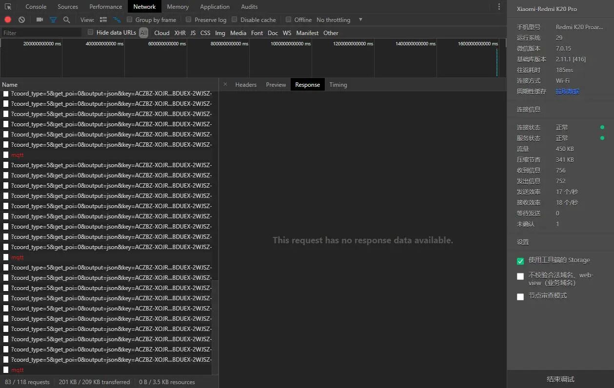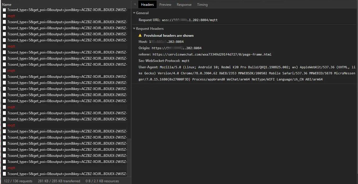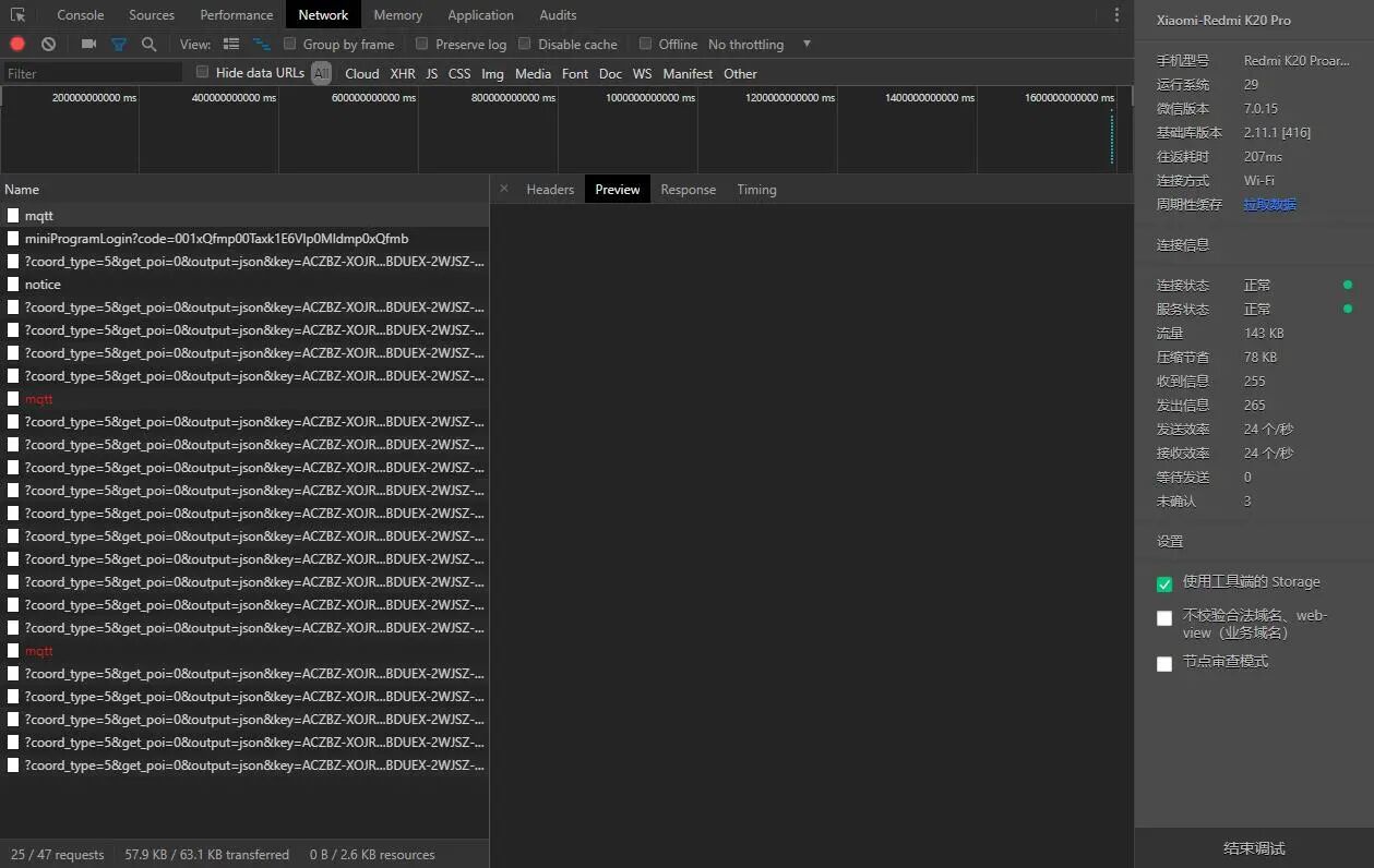 楼主,问题解决了吗?我也遇到类似问题,微信开发页面上的服务器域名已正确设置,我的微信小程序项目也已编译通过,并能通过websocket连接mqtt服务器,但为什么预览和真机调试都连不上,也接收不到数据?如下:https://developers.weixin.qq.com/community/develop/doc/000eca6b1947e8b62a1bef9e65ac00?highLine=%25E8%25BF%259E%25E4%25B8%258D%25E4%25B8%258A