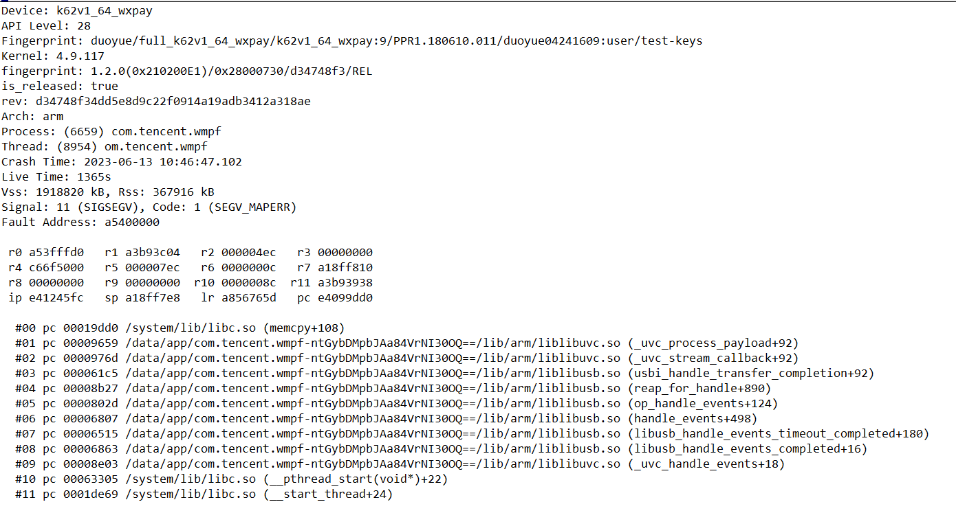 设备原来使用MIPI系统摄像头打电话可以正常预览,但是使用usb摄像头就无法预览并且不定时出现wmpf crash,initGlobalConfig设置usbCameraName为/dev/bus/usb/001/004